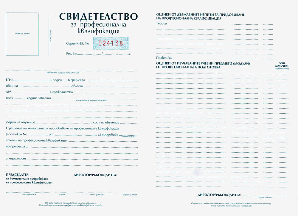 Държавно удостоверение за Професионално